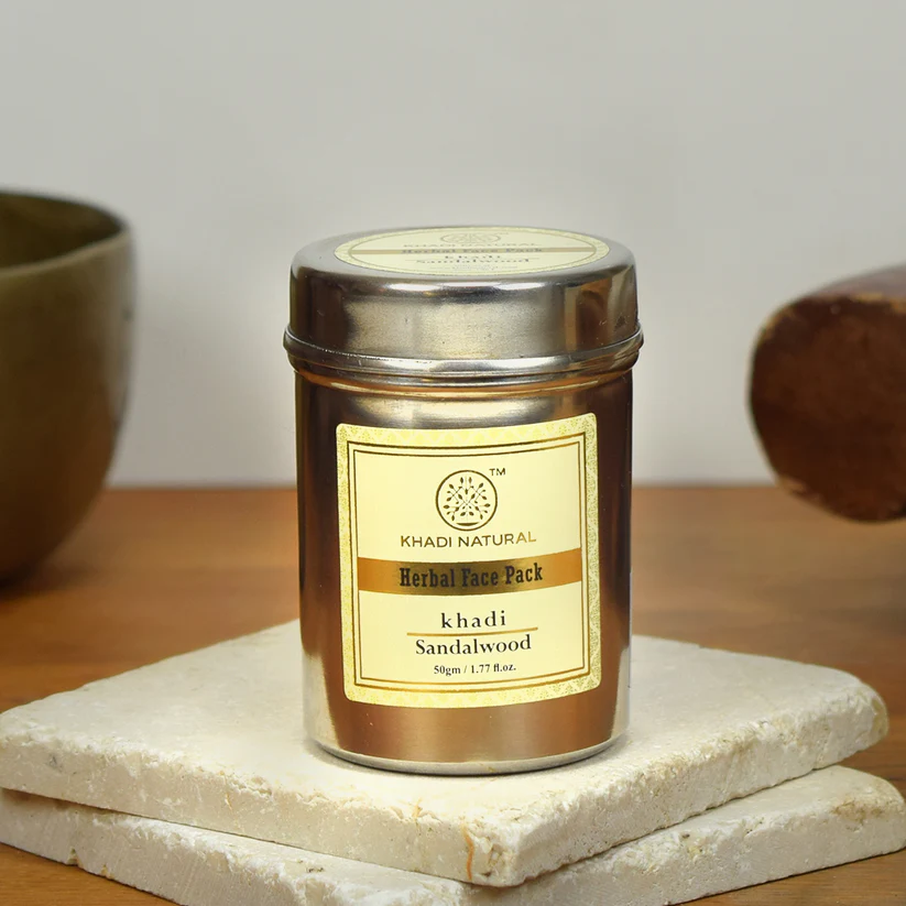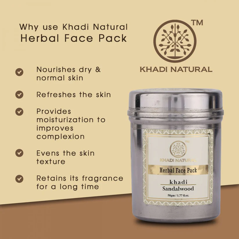 Khadi Natural Herbal Face Pack Sandalwood 50 g is a completely chemical-free, nourishing and moisturising face mask for those with dry or normal skin. Contains, among other things, sandalwood powder whose antiseptic properties help to keep the skin clean and soft and healthy. No chemicals what so ever! The different types of clay and the carefully selected herbal extracts guarantee function and experience.