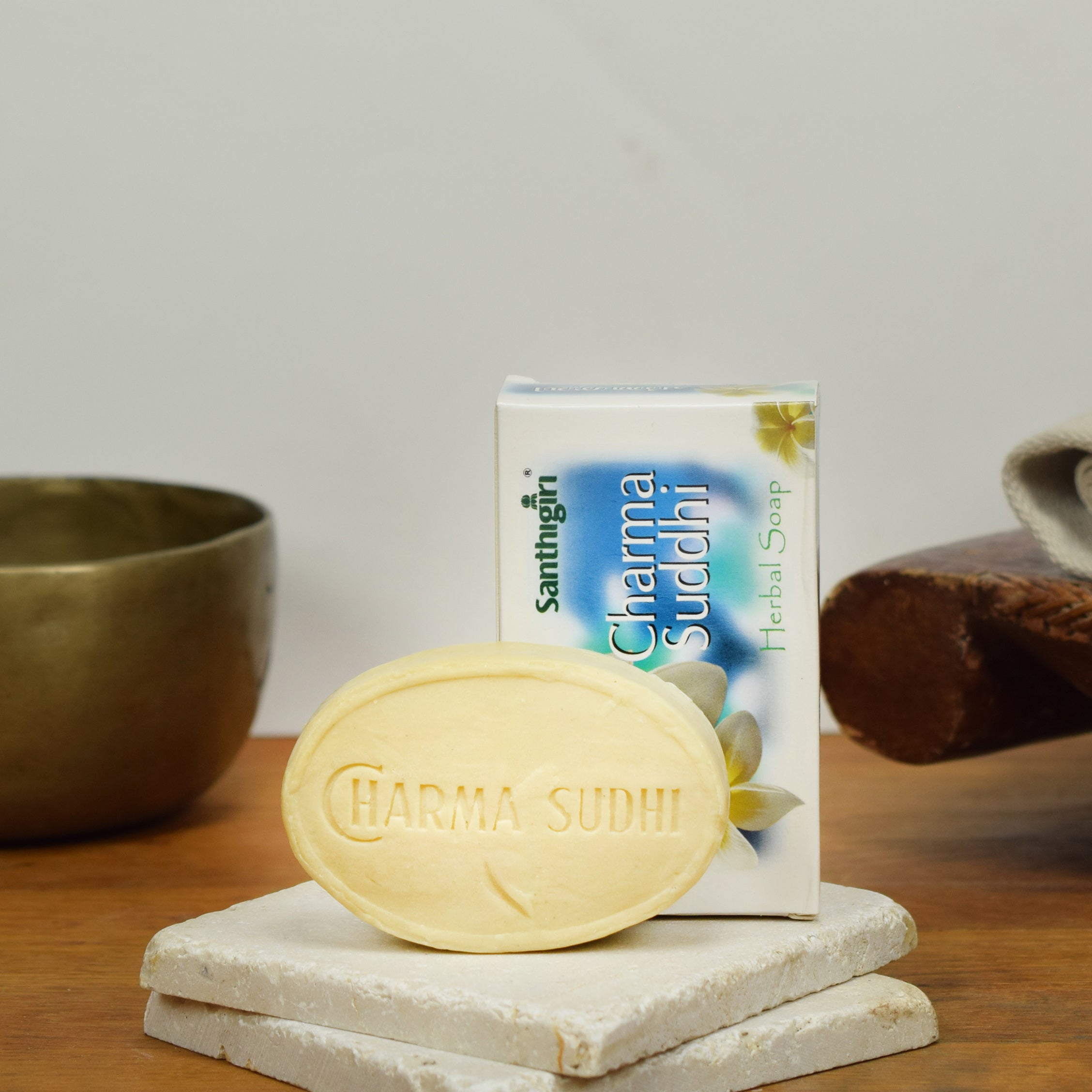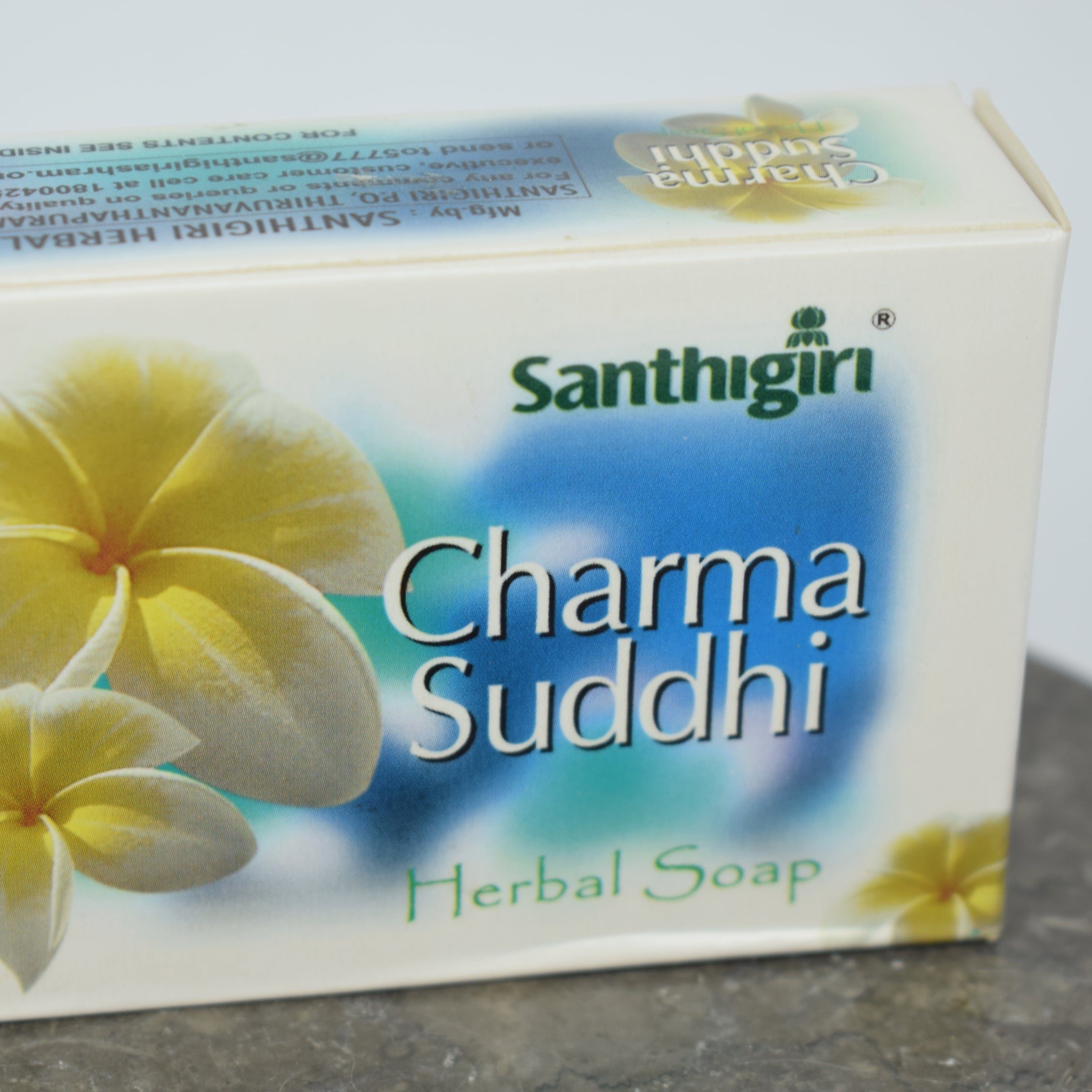 Santhigiri Charma Suddhi natural solid soap 75 g is a handmade coconut oil soap with a floral fragrance. Enriched with healing herbs that are good for most skin imbalances.
