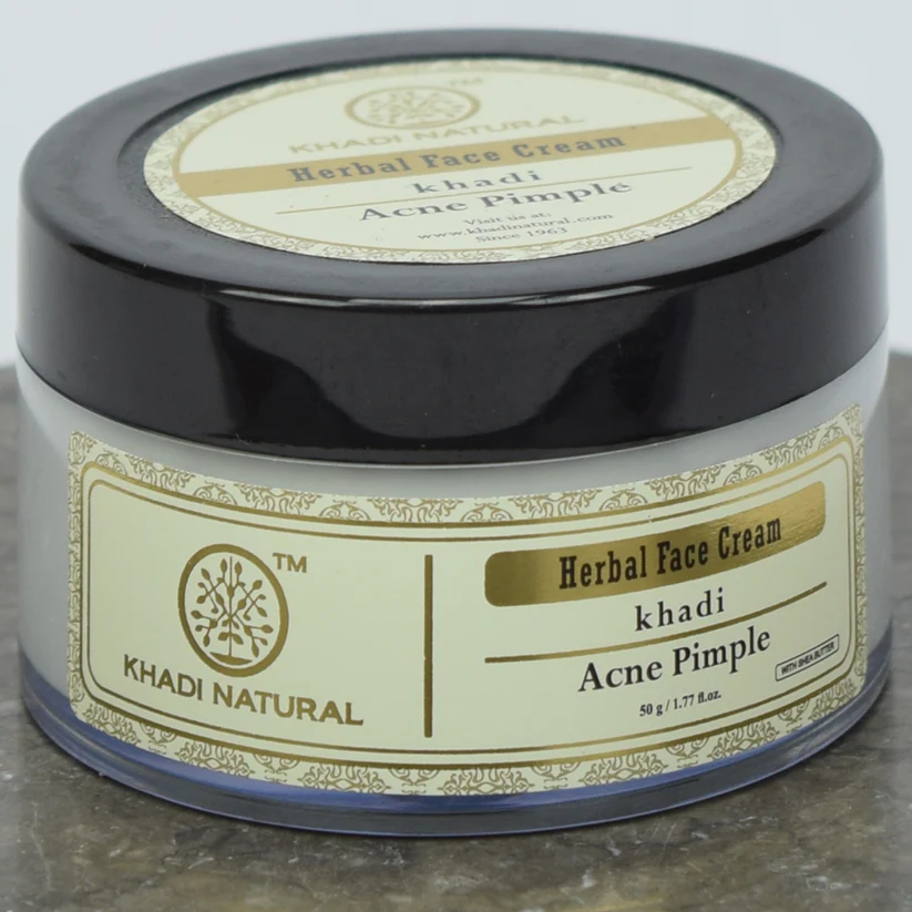 Khadi Natural Herbal Acne Pimple Cream 50 g är en ansiktskräm framtagen för dig med acne. Den ayurvediska örtblandningen är kraftigt antiseptisk och sammandragande, och verkar svalkande och lugnade på huden. Mycket verksam!